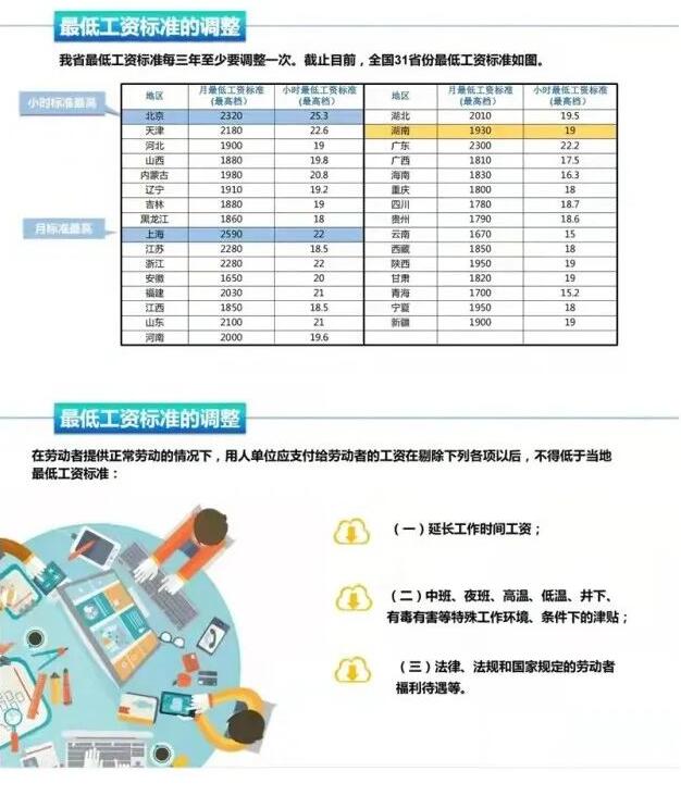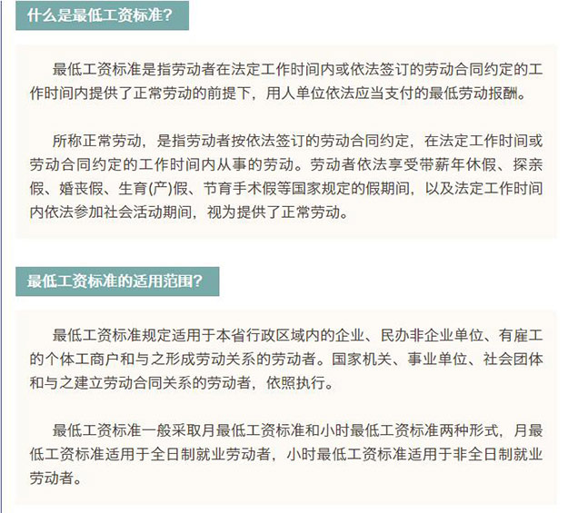 調整后我省月最低工資標準(適用于全日制勞動者)分三個檔,分別為1930元/月、1740元/月、1550元/月;小時最低工資標準(適用于非全日制勞動者)也相應設三個檔,分別為19元、17元、15元。